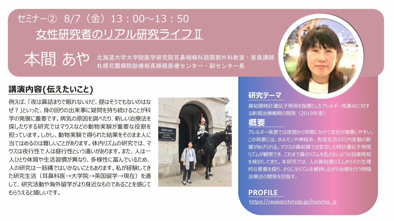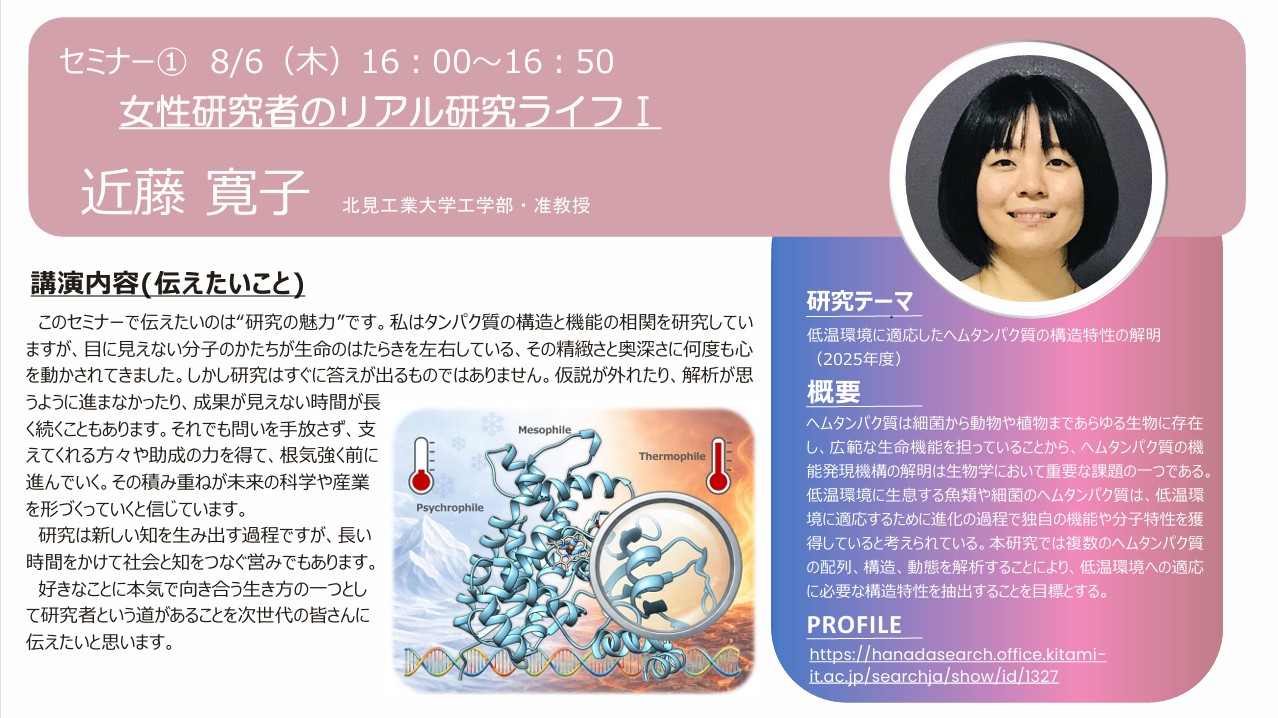 「女性研究者のリアル研究ライフⅠ」 北見工業大学工学部・准教授 近藤 寛子 先生 |
