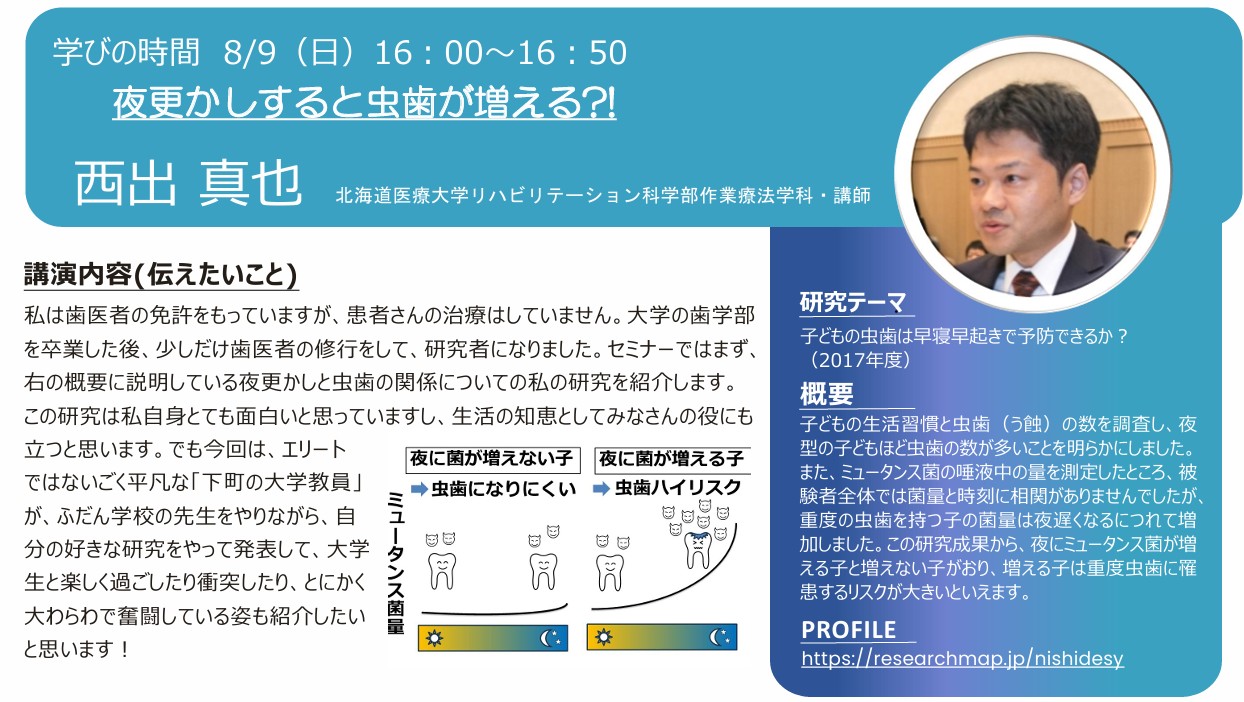 「夜更かしすると虫歯が増える?!」 北海道医療大学リハビリテーション科学部 作業療法学科・講師 西出 真也 先生 |