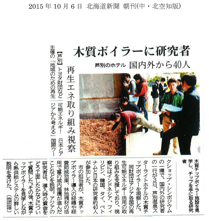 10月2日から5日までの4日間にわたり、北海道を舞台にトヨタ財団、北海道再生可能エネルギー振興機構、北海道大学 持続可能な低炭素社会づくりプロジェクトとの共催にて「地域のための再生可能エネルギー」ワークショップ、国際シンポジウム等を開催致しました。