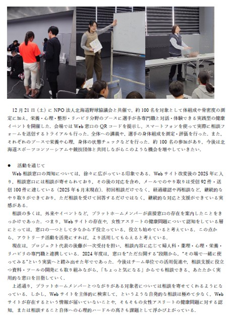 プロジェクト名:女性アスリートの心身をサポートするワンストップ型