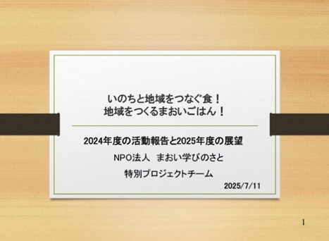 プロジェクト名:いのちと地域をつなぐ食!地域をつくるまおいごはん!