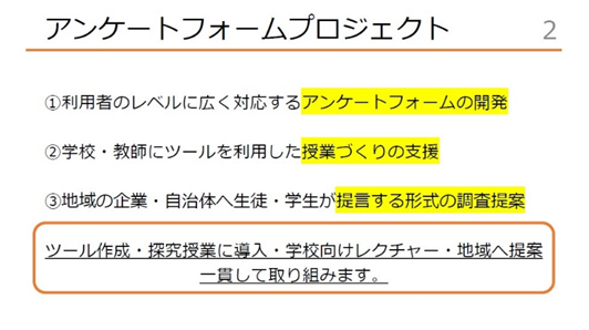プロジェクト名:中学生・高校生・大学生の「探究できるアンケートフォーム」