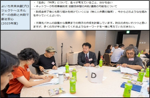 2025年度 新規受領プロジェクト活動内容の発表を聞き、そこから見えてくる課題などについて参加者から情報提供やアドバイスをいただきながら、それぞれの活動に寄り添いう時間となりました。