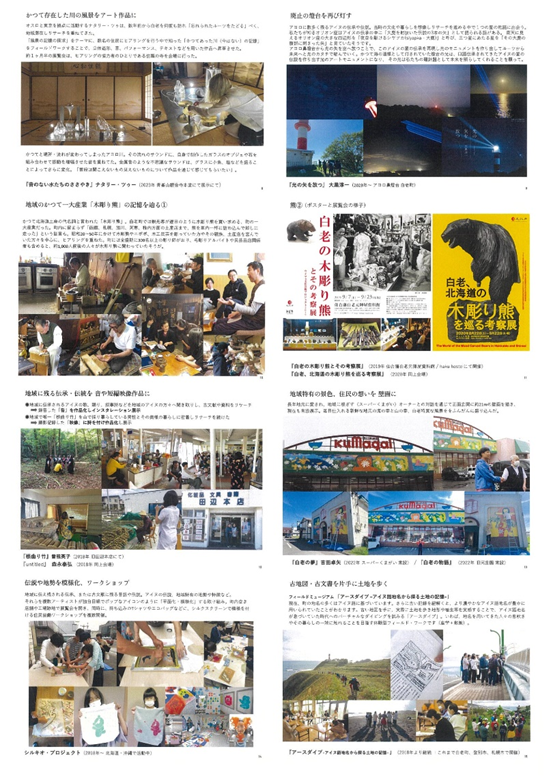 白老町の過疎集落で継続されている森づくりと芸術祭の活動を軸とし、地域の歴史風土や地理、生活に着目したリサーチを深めると同時に、近隣地域とのネットワークの形成強化に努めるプロジェクト。